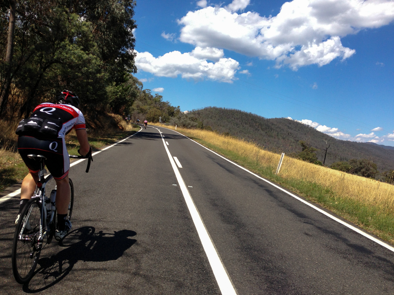 I notice that you have included a picture of the back of my head on the road to Mt. Buffalo. If I had known it was you on my wheel, I would have stopped to shake your hand. This website inspired me to tackle the 3 Peaks for the first time and a number of other ‘firsts’ over the summer (Hotham, Buffalo, Tawonga, Donna Buang, The Wall).
