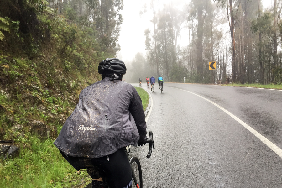 There’s always that point in the week before a ride when you’re hoping the long-range forecast was wrong and that things will fine up closer to the date. But with our Domestique 7 Peaks jaunt to Lake Mountain, the early forecast was for low temperatures and rain and it only stayed that way. In fact, while we were prepared for cold, wet weather, it was probably even more miserable than we first expected.