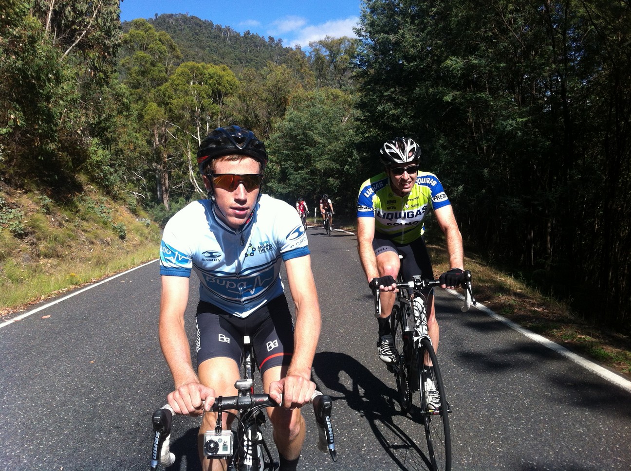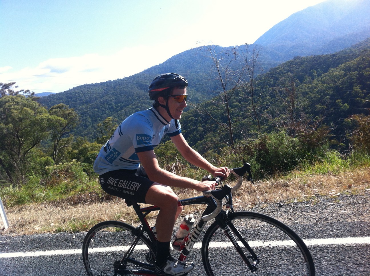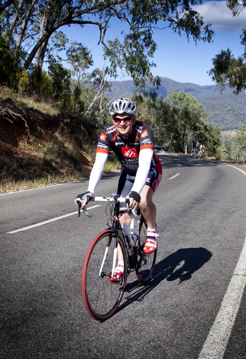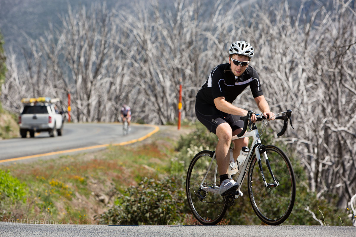 As we powered through the undulating middle section of the climb, Fletch and I were joined by Brendan Canty — the bloke who’d tapped out an incredible 48 minute effort on Mt. Buller a few weekends before. I knew if Brendan decided to lift the pace there was no way I could stay with him but he seemed happy to take it easy and chat.