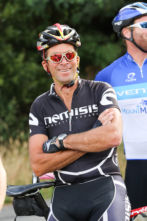 Despite having spent most of the climb coughing up a lung and talking with a squeaky voice that made him sound like a pubescent boy, Andy decided to chuck it in the big dog and wind it up for a sprint. I tried to follow but it was all over within a couple of metres and I just decided to cruise over the line, trying to smile for Nigel Welch’s waiting camera as I entered the car park.