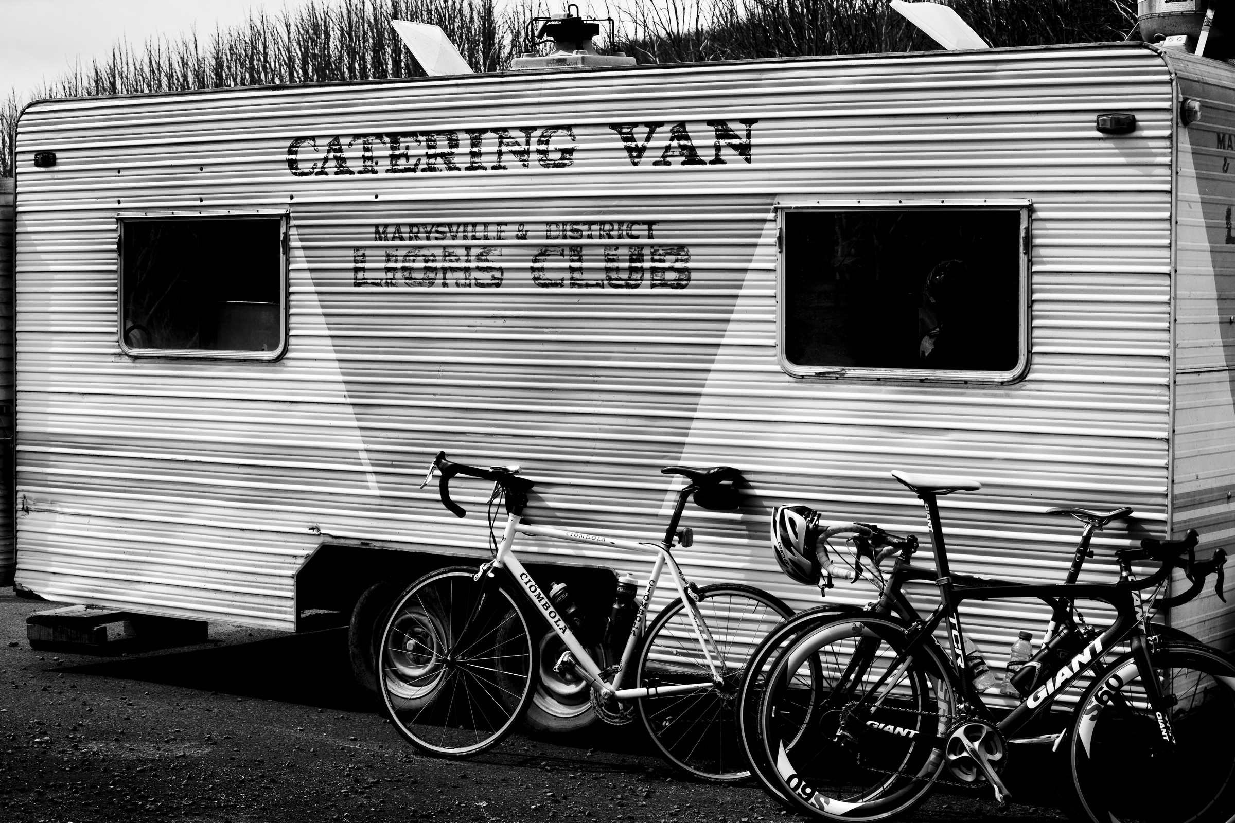One of the fondest memories I have of riding with the Hells 500 crew was during the Donna Done Dirty ride in August in which Andy’s wife Tammy and his father Tony set up a mobile soup kitchen in the middle of nowhere, in the freezing cold. We got a taste of the same van Bergen hospitality at Lake Mountain on Saturday when, a little over halfway through the climb, we came across Andy’s parents Tony and Judy standing by the side of the road.
