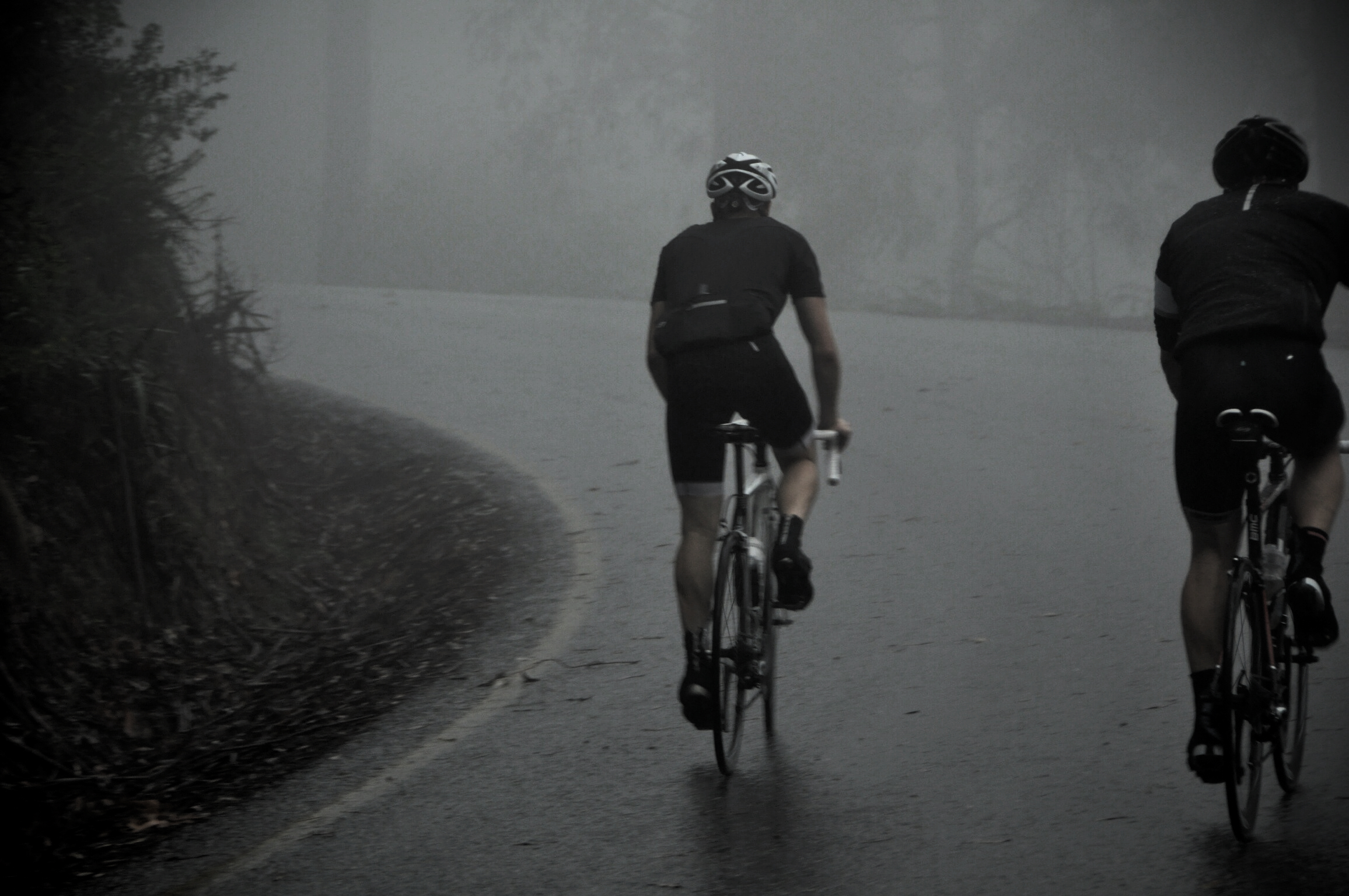It must be one of the hardest things as a recreational cyclist: convincing yourself it’s worthwhile kitting up and getting on the bike while the rain is thumping down outside. It didn’t help that when 9.15am arrived and it was time to descend, the rain only got heavier, the wind picked up and a few claps of thunder rang out over the mounain. ‘Yeah, this is a great idea.’