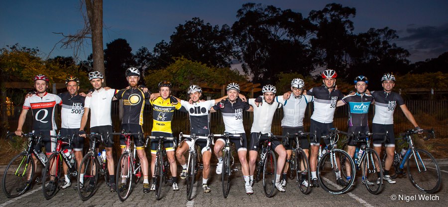 Our 13-strong group met at The Basin a little before 6am and after a couple of pre-ride photos courtesy of Nigel Welch and John Gogis we were off, tackling the first climb — the 1 in 20 — as the sun rose.