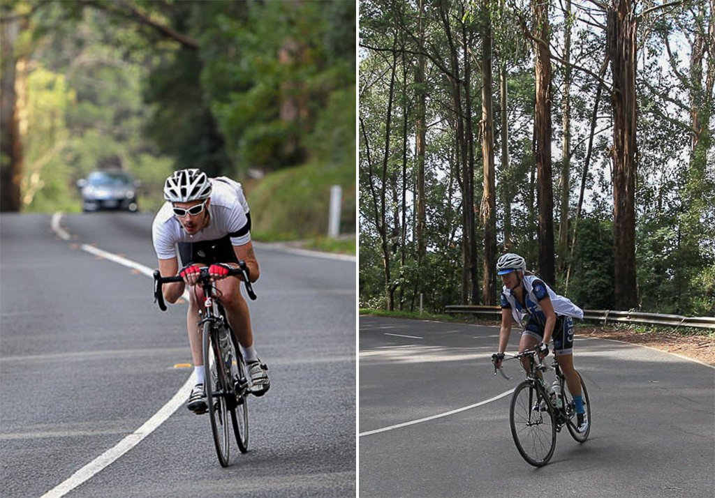 I certainly wasn’t feeling any faster but the legs were responding well and I was able to keep turning the pedals over — click-crunch, click-crunch, click-crunch – quite comfortably. Evan reached the Olinda rest-stop a minute or so ahead of me and when I got there I didn’t bother stopping. “Let’s get this done”, I think I said. Or at least that’s what I was thinking.