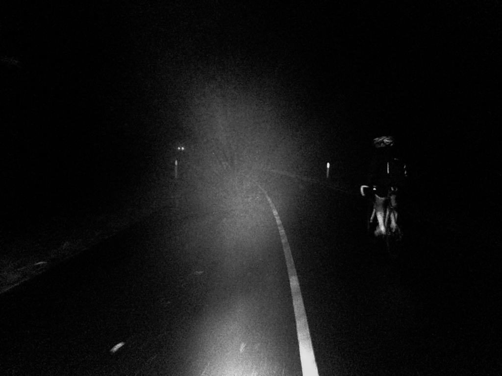 i really enjoy riding in the dark, so this was a great read. in the photos it looks like your lights are on when climbing. i find immersing myself into the darkness completely heightens the enjoyment and focuses the mind, so i turn my lights off when climbing. did you try that?