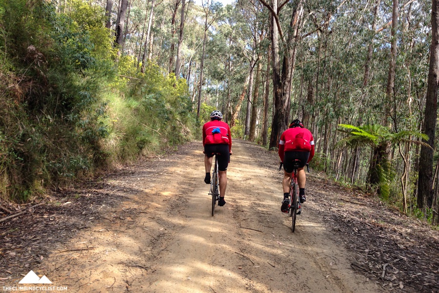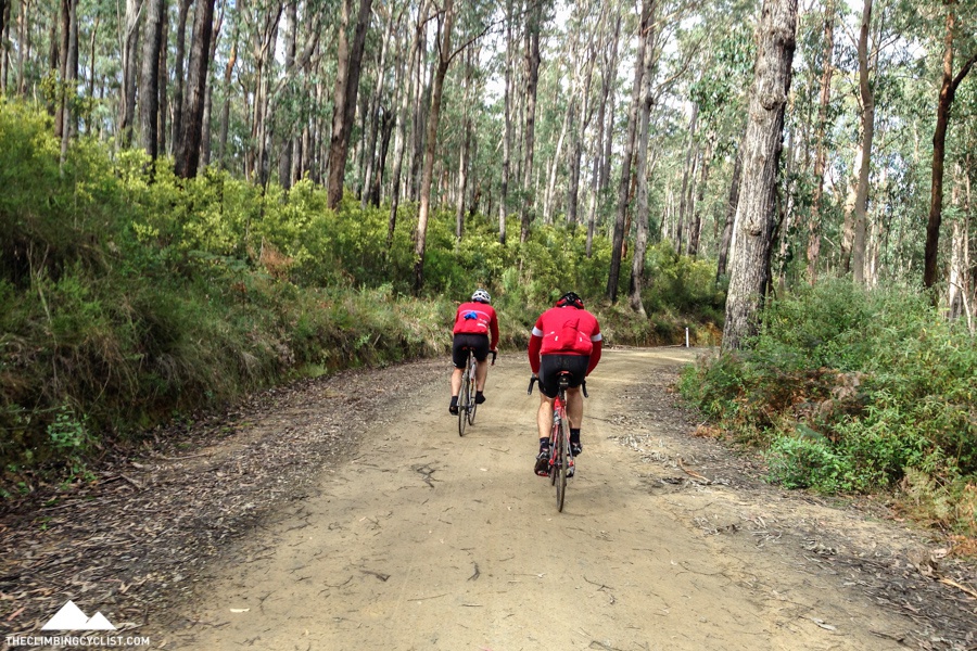I knew there was a bit of a climb to get to the O’Shannassy Aqueduct Trail but the steep ramps of Dee Road were a rude awakening. I tried to find a comfortable rhythm, knowing that there was plenty of tough climbing to come later in the ride, but even still it was a relief to get to the top and to look out over the great views from the Aqueduct Trail.