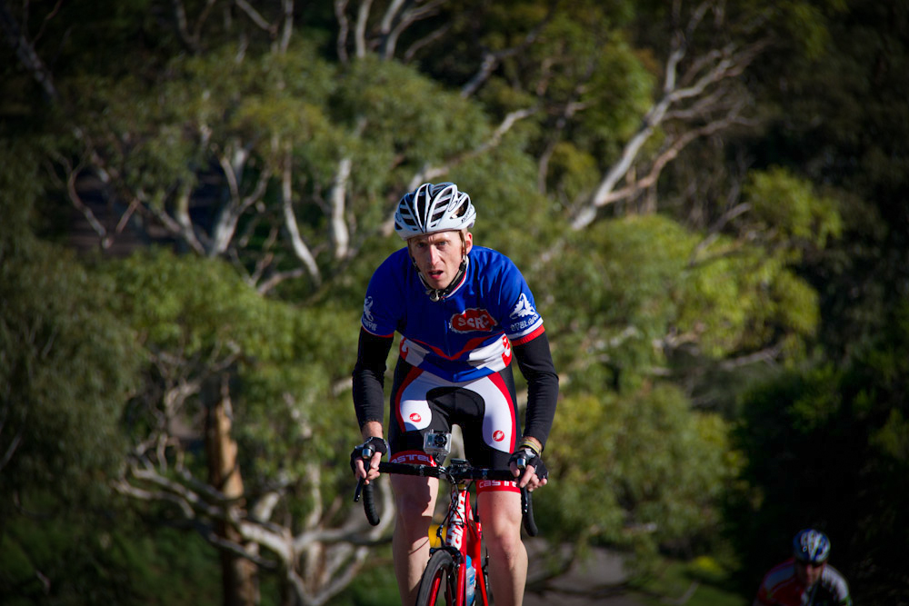 Kensington Road doesn’t sound particularly daunting at 1.3km at an average gradient of 11.5%, but it demands every bit of you. The climb slowly bends to the right and every time you go around a little bend, the road increases its gradient. By the time you are near the top you are peppering away at around 18% before it dips slightly to around 13% for the final 200m or so.