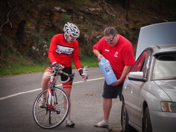 Although I felt a bit guilty for doing it, I left our little ‘gruppetto’ to fend for themselves on the fifth climb of Coach Road as I needed to move up the field to help coordinate the support cars for everyone else. Unfortunately the quickest riders were going far quicker than I had anticipated, so I am not sure how much support they received … or even needed? Hopefully you guys got something!