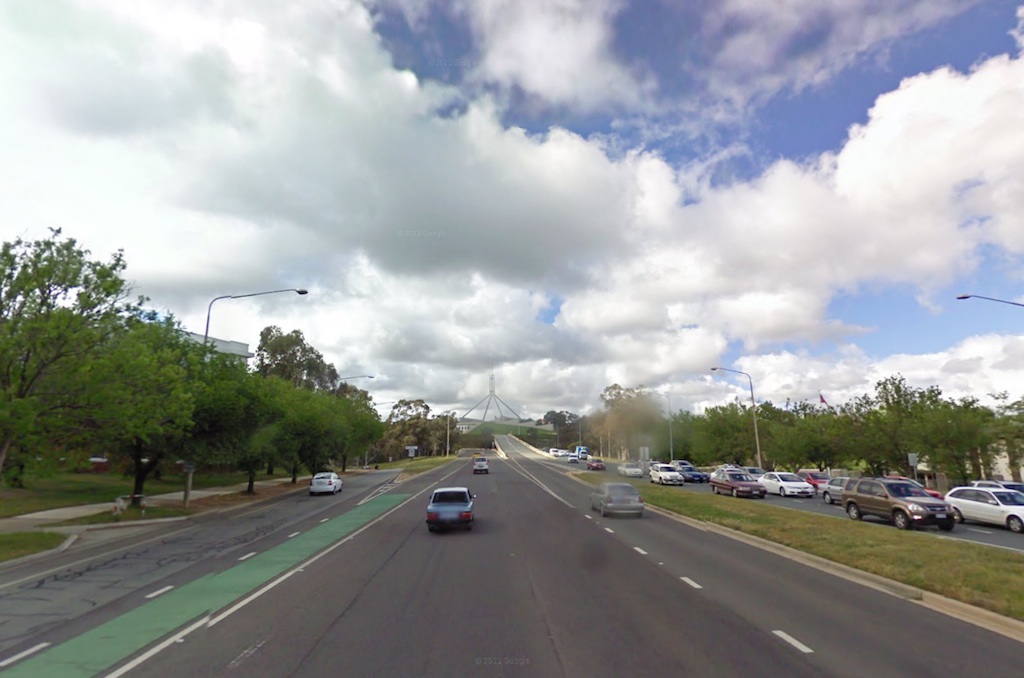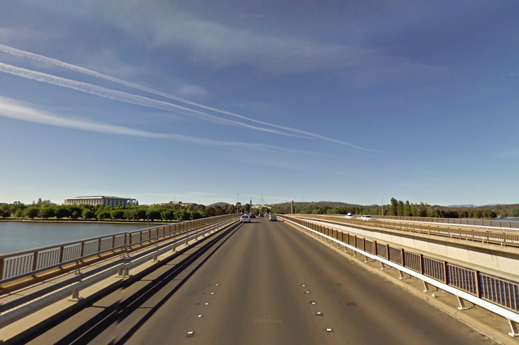 From here to the finish line it’s a dead straight, dead flat drag over Lake Burley Griffin and down the road towards Parliament House. The stage finishes roughly 100m before the State Circle which loops around Parliament House.